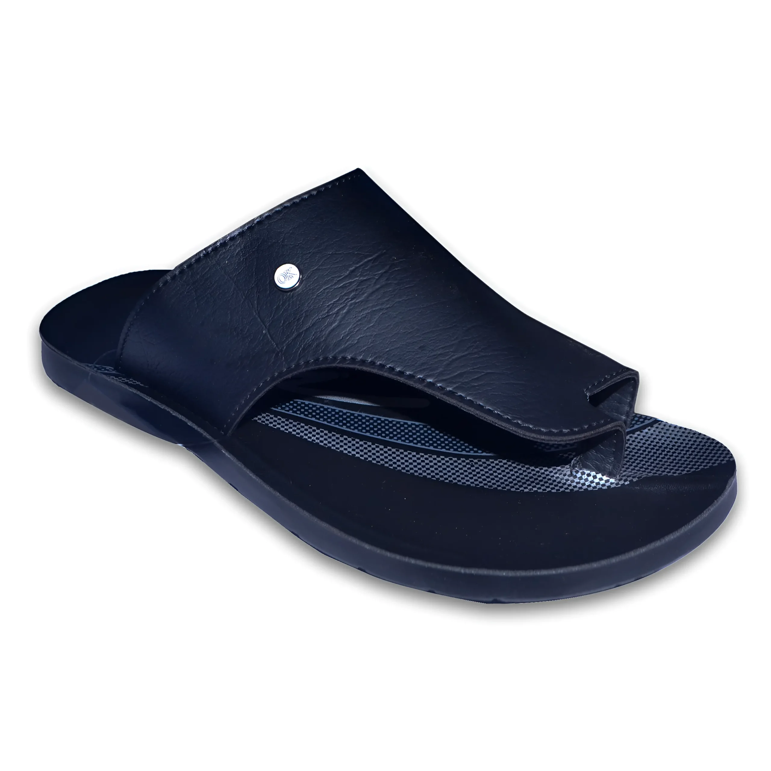 & Free ShippingElegant men’s toe-loop sandal in a sleek black finish with a premium leather-look upper. Featuring a broad single strap design with a comfortable toe hold for added grip and stability. The cushioned, textured footbed ensures lasting comfort, while the lightweight, durable sole provides reliable support for everyday wear. Ideal for casual and traditional styling.