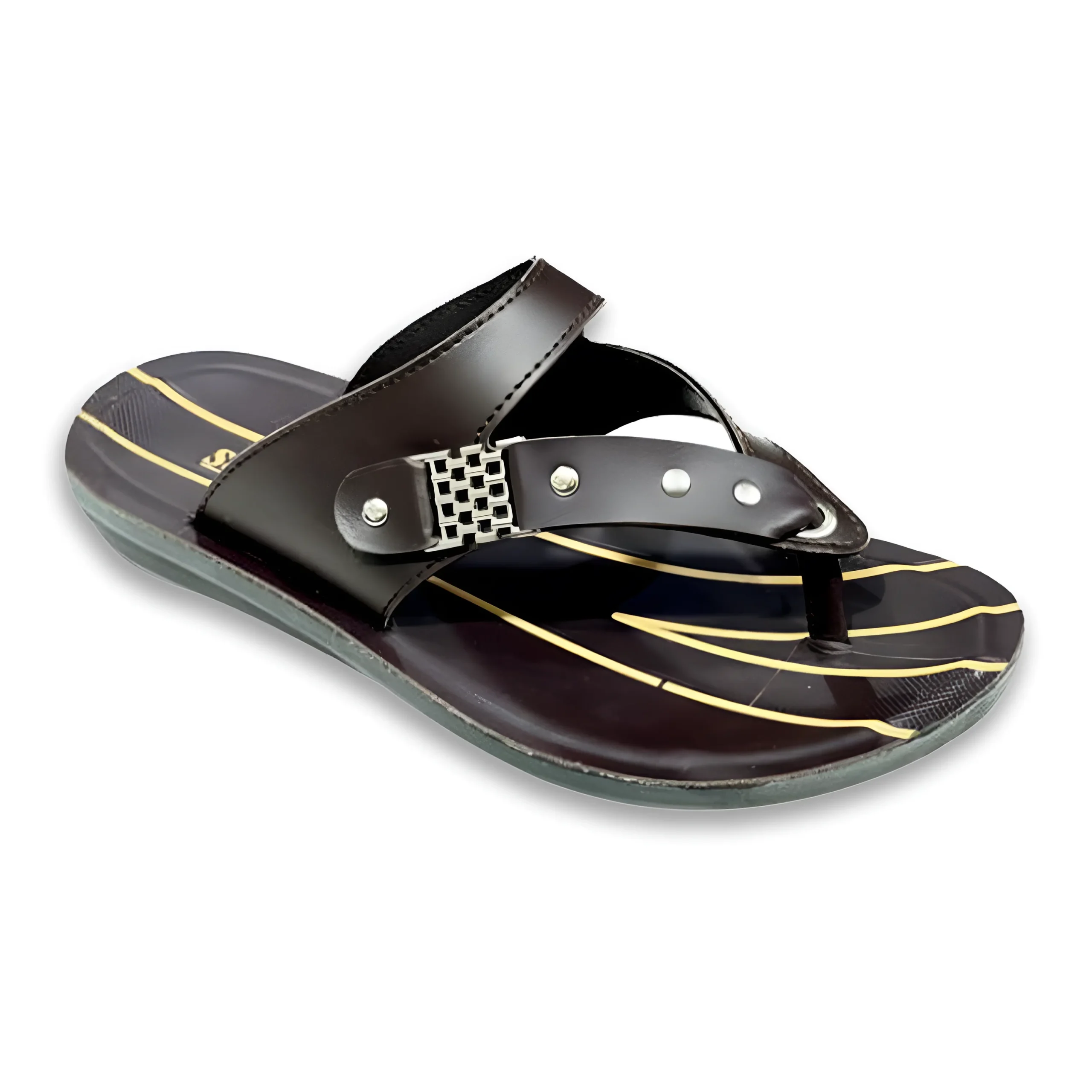 & Free ShippingStylish men’s toe-post sandals designed for a bold and contemporary look. Available in classic black and rich brown options, these sandals feature a broad upper strap with metallic accent detailing for a modern touch. The sturdy toe loop ensures a secure fit, while the smooth inner lining enhances comfort.