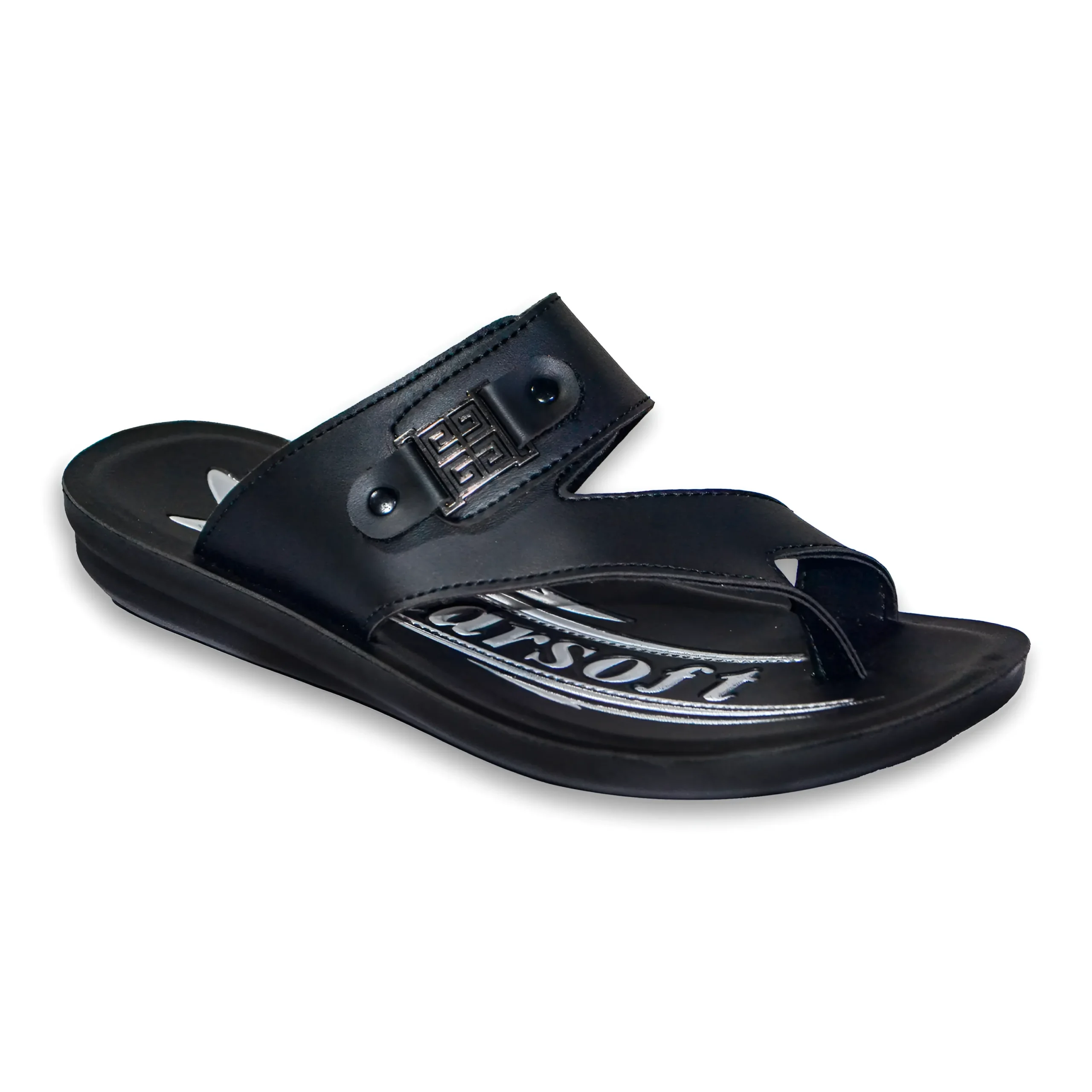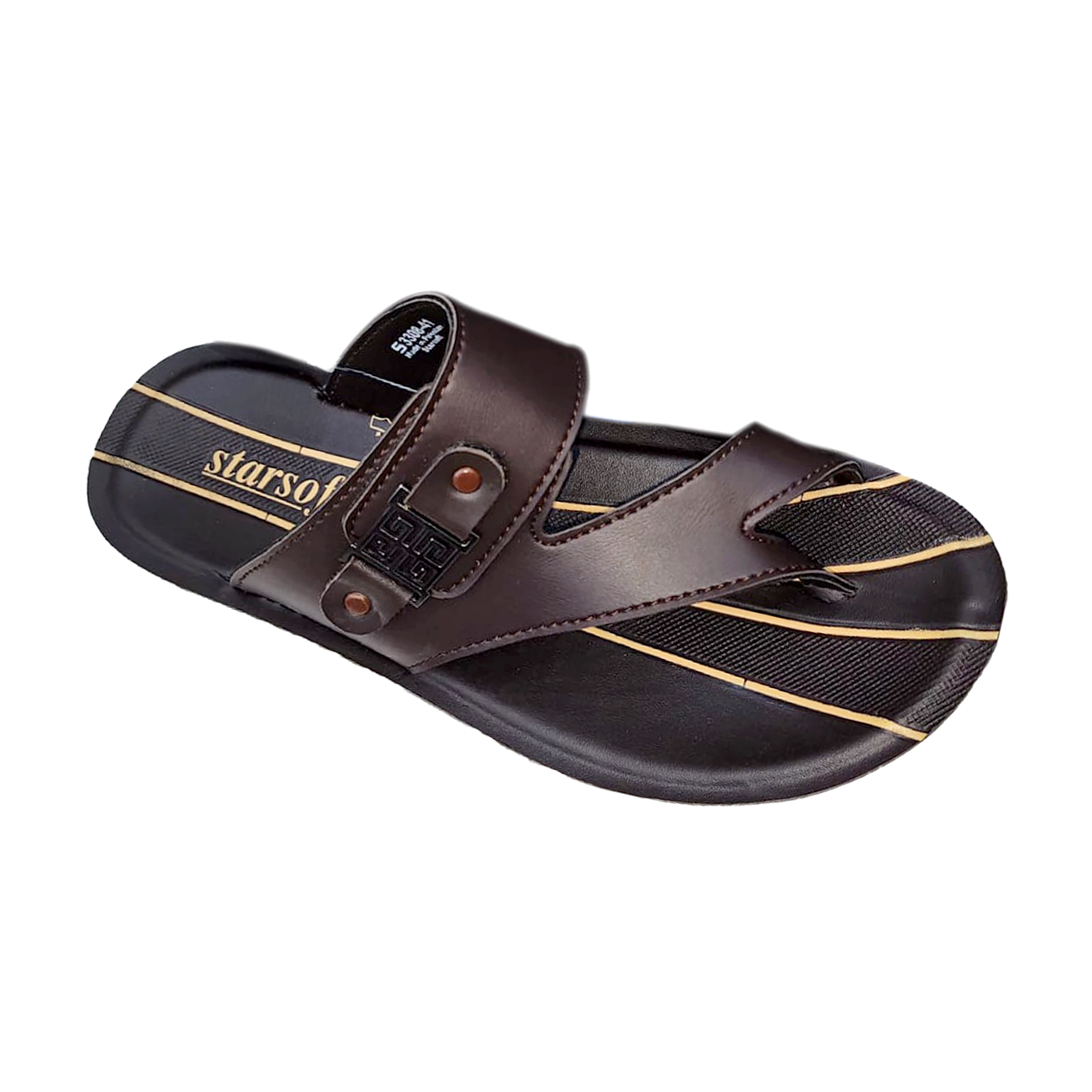 Trendy men’s toe-post sandals crafted for comfort and modern style. Available in elegant brown and classic black, these sandals feature a cross-strap upper with stylish metallic detailing for a bold, contemporary touch. The secure toe loop design ensures stability, while the soft inner lining enhances all-day comfort.