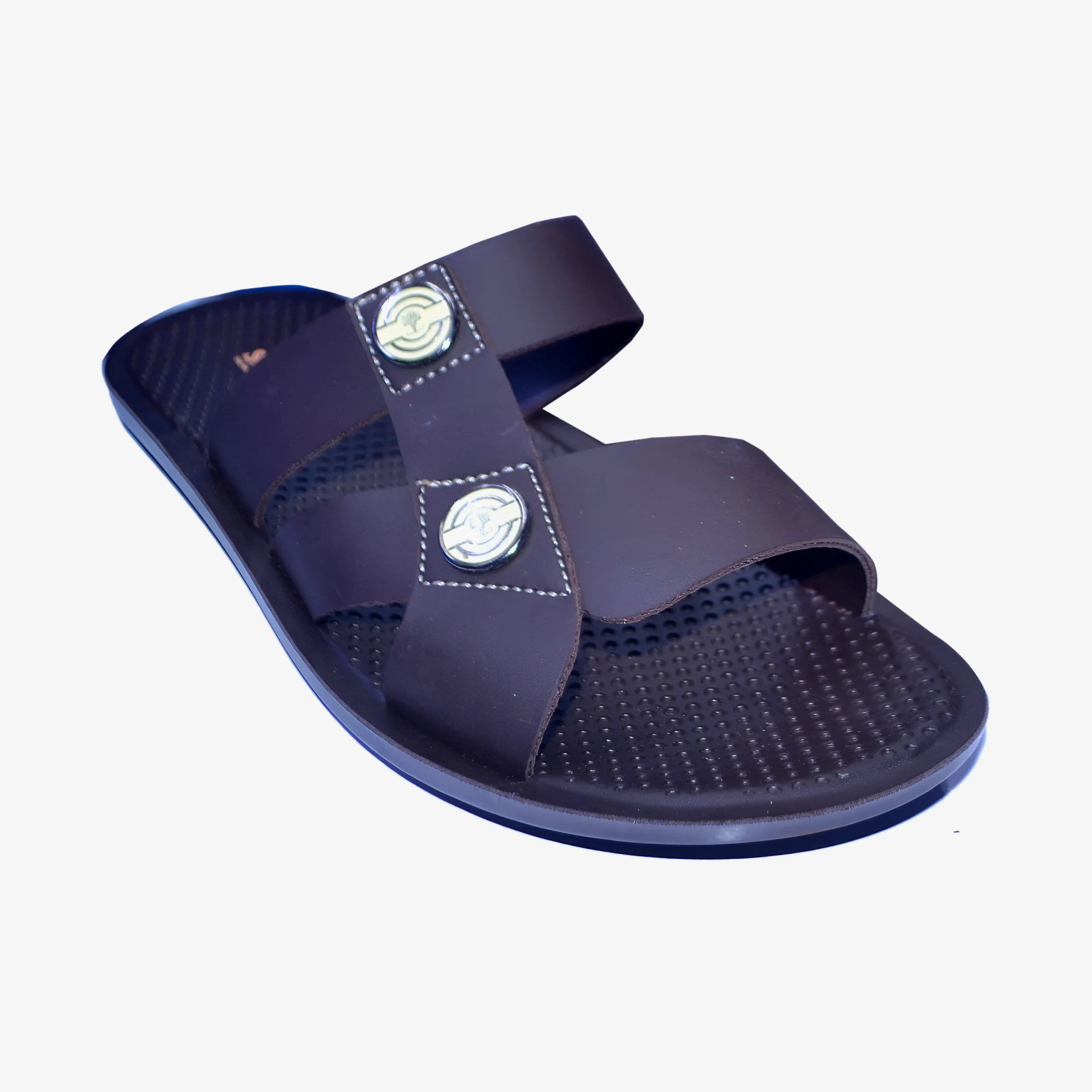 & Free ShippingTrendy men’s slip-on sandal with a sleek cross-strap design and stylish button accents. Made from durable, high-quality material with a soft textured footbed and lightweight sole for superior comfort. Perfect for casual everyday wear.