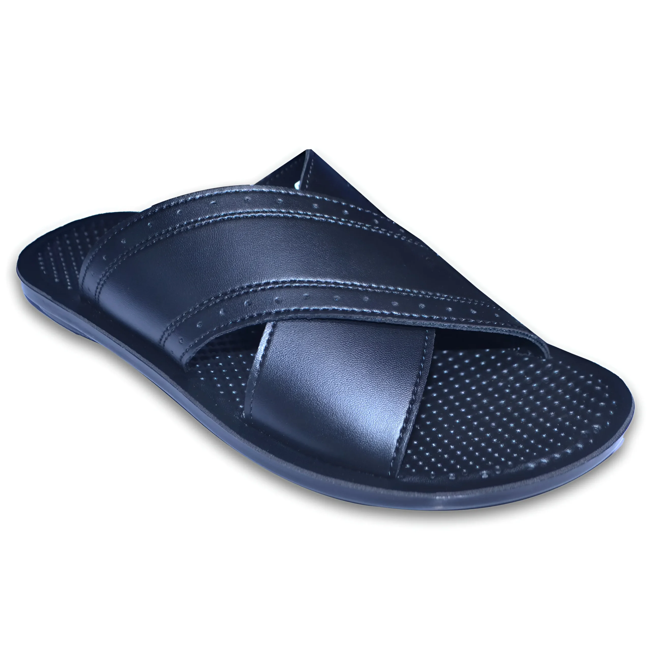 & Free ShippingPremium men’s sandal with a sleek cross-strap design and fine stitched detailing. Crafted from durable material with a soft textured footbed and lightweight sole for enhanced comfort and stability. Ideal for daily casual wear.