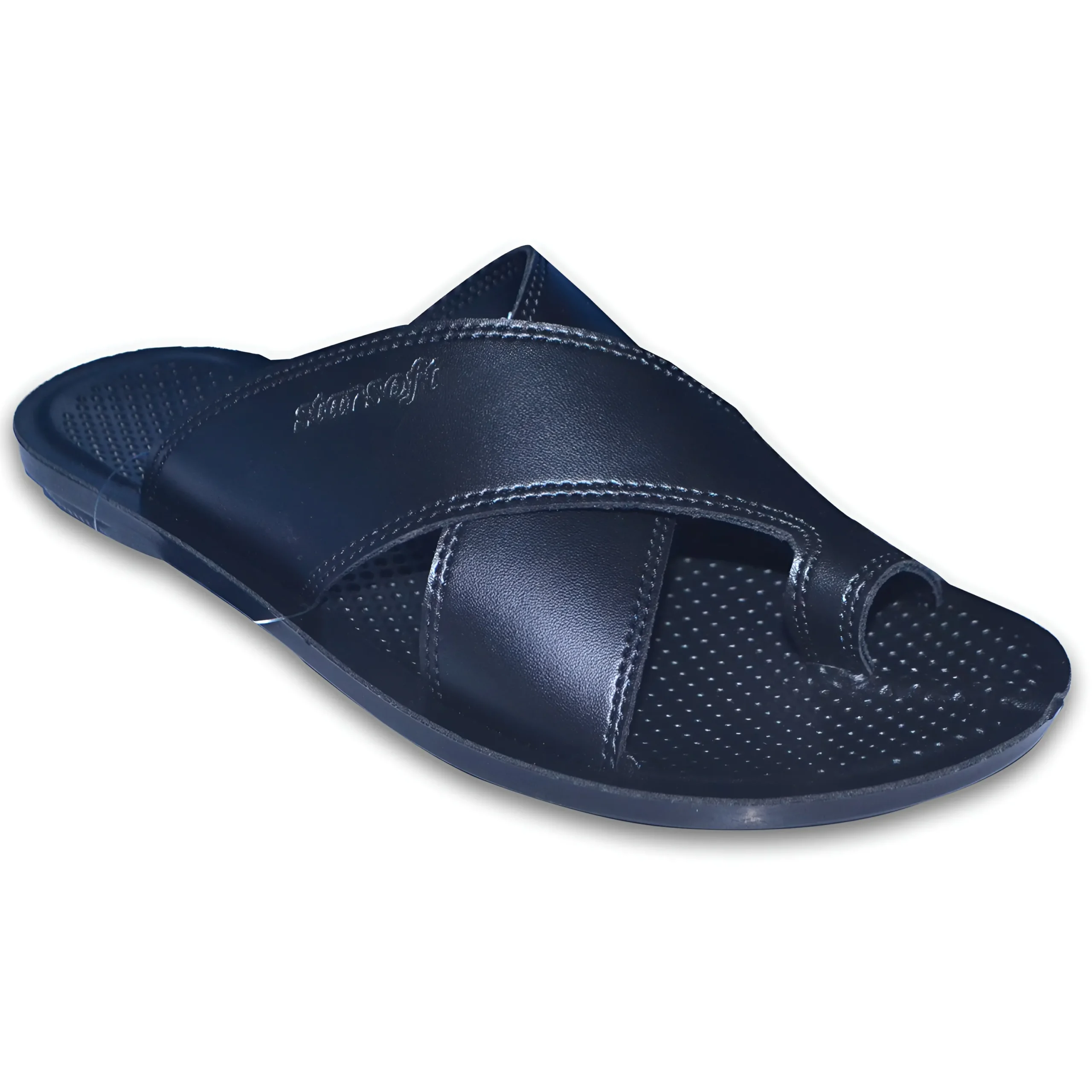 Comfort-focused men’s sandal with a broad strap and supportive toe loop design. Detailed with neat stitching and embossed branding, featuring a soft textured footbed and lightweight sole for everyday comfort and durability.