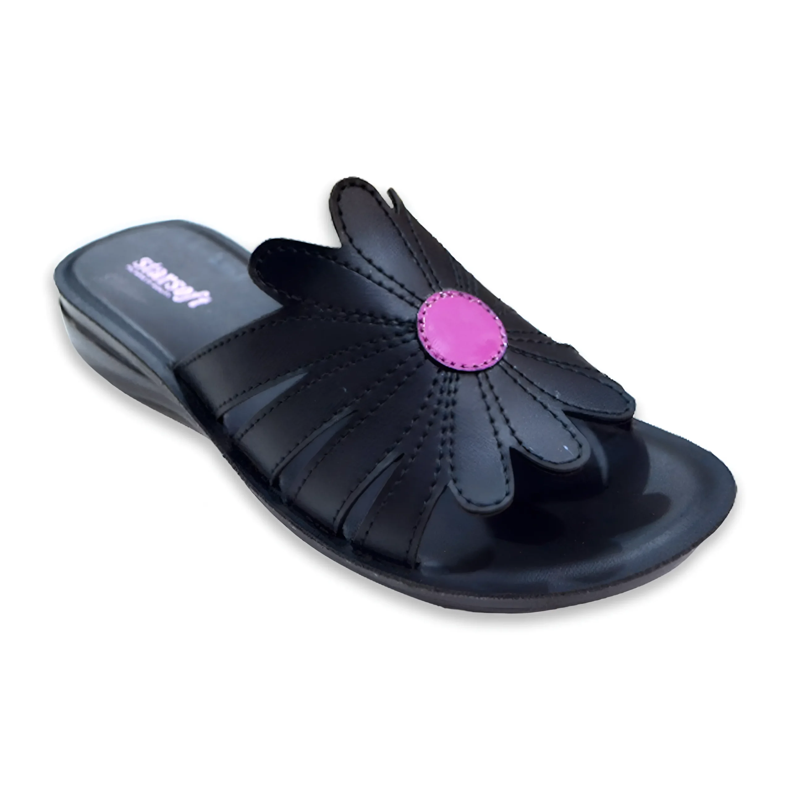 & Free ShippingStylish black ladies slipper featuring a beautiful flower-shaped upper with a pink center accent. Designed with a soft cushioned footbed and lightweight sole, offering comfort and an elegant look for everyday casual wear.